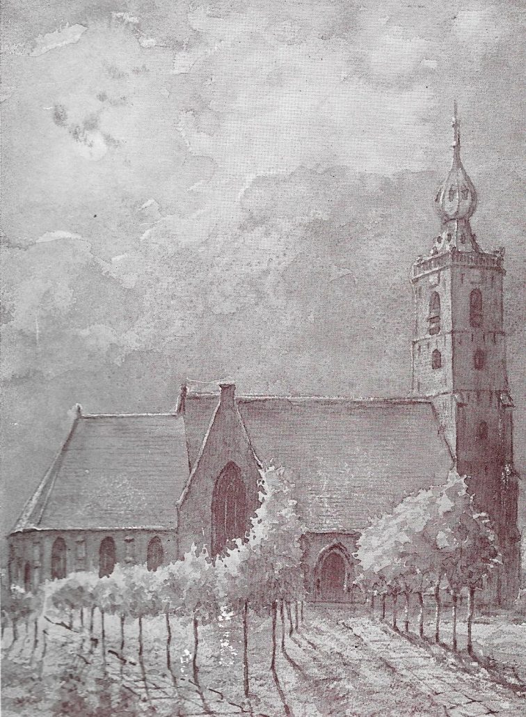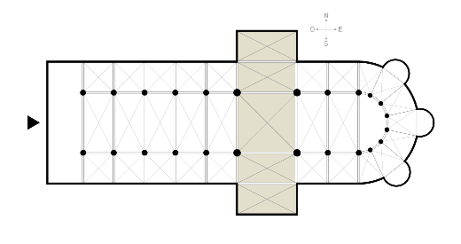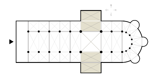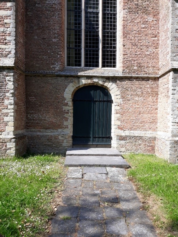 De kerk heeft de vorm van een kruis. De dwarsbalk van het kruis heet het transept. Afbeelding 1: Zij-ingang met altaarstenen als stoep Afbeelding 2: Het transept Afbeelding 3: De twee dwarsarmen van het transept en in het midden het hart van het kruis. Het schip is het oudste gedeelte van de kerk. Het koor en het transept met daarin de noorderkapel en de zuiderkapel zijn van later datum. Dat is o.a te zien aan de ramen. Het kerkgebouw heeft één zijbeuk aan de noordkant. De totale lengte van de kerk is 48 meter. De toren, waarin een traptorentje is aangebracht, is uit het laatste kwartaal van de vijftiende eeuw. Deze is gebouwd in de stijl van de toren van het St. Michielsklooster te Antwerpen. Fraai is het kruisgewelf in het torenportaal en een fragment van een versierd kapiteel uit de kerk in het traptorentje. Met een peer en een spits werd de toren voltooid. In 1521 werd de eerste klok in de toren opgehangen. Deze was in 1521 te Mechelen gegoten door J. Waghevens. De tweede, gegoten door Johannes Specht te Rotterdam, kwam pas in 1752. ![]()