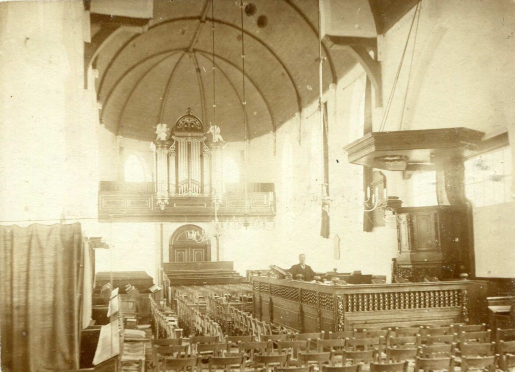 Vanwege de groei van het aantal kerkgangers wordt de inrichting in 1793 veranderd. Er worden ook vier nieuwe koperen kaarsenkronen opgehangen. In 1794 maakt Aren Wafelbakker een sierrand voor de leuning van de preekstoel. Aren was visser en maakte deze leuningen met een haringkaakmesje. Er was al een sierrand gemaakt door een beeldhouwer. Die werd links geplaatst en die van Aren kreeg een ereplaats aan de rechterkant. Ook na de brand van 1948 kregen ze weer een plaats op de preekstoelleuning. Het jaar 1789 is bekend vanwege de Frans Revolutie. Na 1795, de Franse legers hebben dan al het grootste gedeelte van ons land veroverd, hebben ook de ideeën van de Franse revolutie – vrijheid, gelijkheid en broederschap- gevolgen voor de kerk. Van de fraaie herenbanken voor de leden van de plaatselijke regering worden de wapenschilden verwijderd en hetzelfde gebeurt bij de grafzerken, maar omdat het merendeel van deze zerken na de twee branden vernield is, is dat alleen nog te zien bij de grafzerken die nu in het koor liggen. Het tinnen (koperen) doopbekken dat nu aan de preekstoel hangt wordt in 1809 aangekocht voor 1 gulden en 16 schellingen.