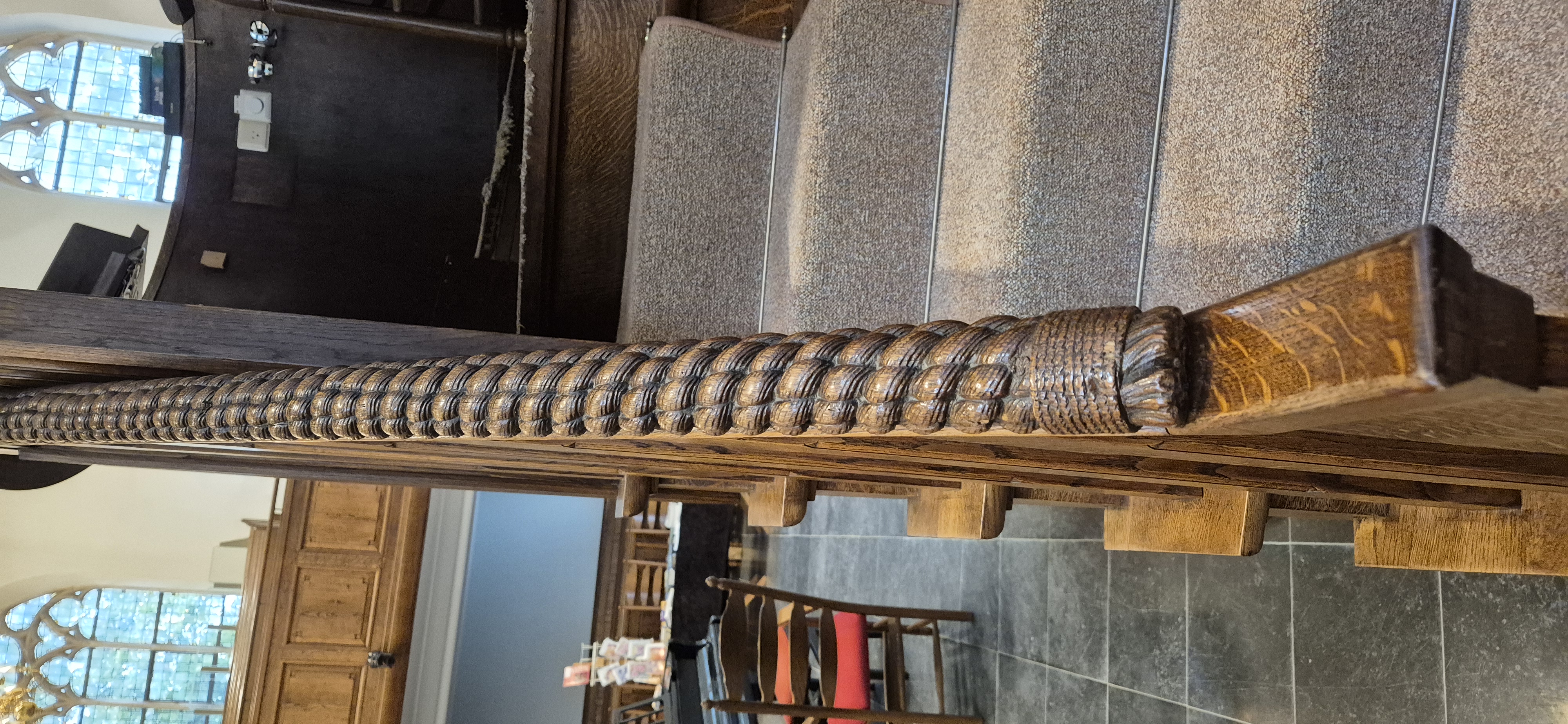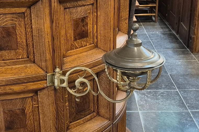 09 okt 2025 ![]() Geschiedenis van de Grote of St. MichaëlskerkInterieur - ExterieurNadat de kerk voltooid was, kon men aan de verfraaiing beginnen. In 1594 wordt door schilder Nicolaes Stallaert een groot tafereel geschilderd, voorstellende de Tien Geboden Gods. Leendert en Sijbert Vliegvis gaven het een plaats in het koor. Daarna worden de muren van het koor met hout bekleed. Het koor wordt kort daarna voorzien van een nieuwe lessenaar en nieuwe banken en in 1601 wordt een plavuizen vloer gelegd. Daarvoor worden bij Jan IJsbrandzoon Pannebakker, te Delft, 1000 rode plavuizen gekocht en in Dordrecht ook nog blauwe plavuizen. Op 5 febr. 1605 wordt een “croone gekocht voor 1 pond en 6 schellingen”. Huich Arensz. koopt dan op kosten van het dorpsbestuur nog een “metaele croone”. Bij Hans de Lijndraaier in Sommelsdijk wordt 40 m. touw gekocht om de twee kronen op te hangen. Engel Bastiaens krijgt een paar schellingen voor het poetsen van de kronen. De rekening vermeldt verder dat ze na afloop de nodige vaemen bier gedronken hebben om dit heuglijke feit te vieren. Aan de preekstoel worden ijzeren luchters (kandelaars) bevestigd. Blijkbaar had ds. Pieter Jansz. Zeegers (predikant van 1606-1608) niet voldoende licht om zijn preek te houden. Ds. Zeeger was een bijzonder man, want hij oefende onbevoegd de geneeskunst uit. Hij werd daarvoor ook aangeklaagd. In de aanklacht stond dat hij een schandaal en een “pest der kerken” was. Iemand uit Ooltgensplaat, waar hij ook dominee was geweest, kwam vertellen dat hij zijn vrouw “deur enen drank om den hals geholpen had.” In 1605 wordt ook nog een eikenhouten wenteltrap naar de preekstoel gemaakt en voor de derde keer komen er nieuwe banken bij in het koor. Op de eikenhouten banken en ook op verschillende andere plaatsen in de kerk brengt men blakers (kaarsenhouders) aan. In de winter van 1607-1608 wordt 44 pond kaarsen opgebrand. Kosten 1 pond, 16 schellingen en 7 penningen. In 1609 maakte Zeger Quirijnsz van der Maes een glas in lood raam met de wapens van baljuw en schepenen van Middelharnis. Vervolgens wordt dat raam door het dorpsbestuur aan de kerk geschonken. 15 jaar later verkoopt de kerkvoogdij het hek voor de tuin (het gebied rondom de preekstoel) aan de kerk van Stad aan het Haringvliet. Later wordt er weer een nieuw hekwerk aangebracht.